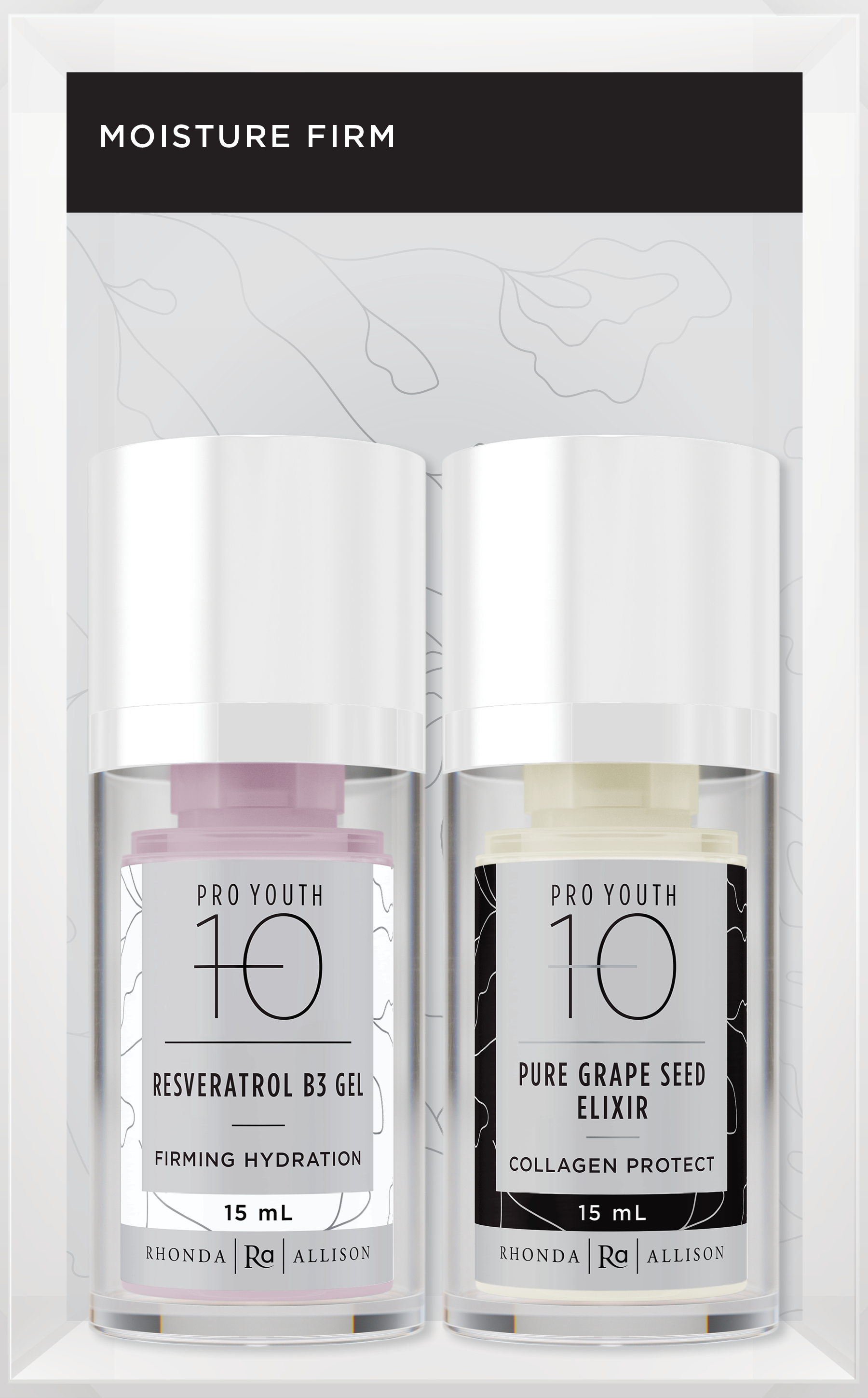 Tone and hydrate skin with our Pro Youth -10 Moisture Firm duo. A powerful combination of potent antioxidants and hydration help firm skin and leave it with a fresh, iridescent glow. Not just for dry skin, the fast-absorbing action of the Resveratrol B3 Gel makes this a great choice for combo/oily skin as well.